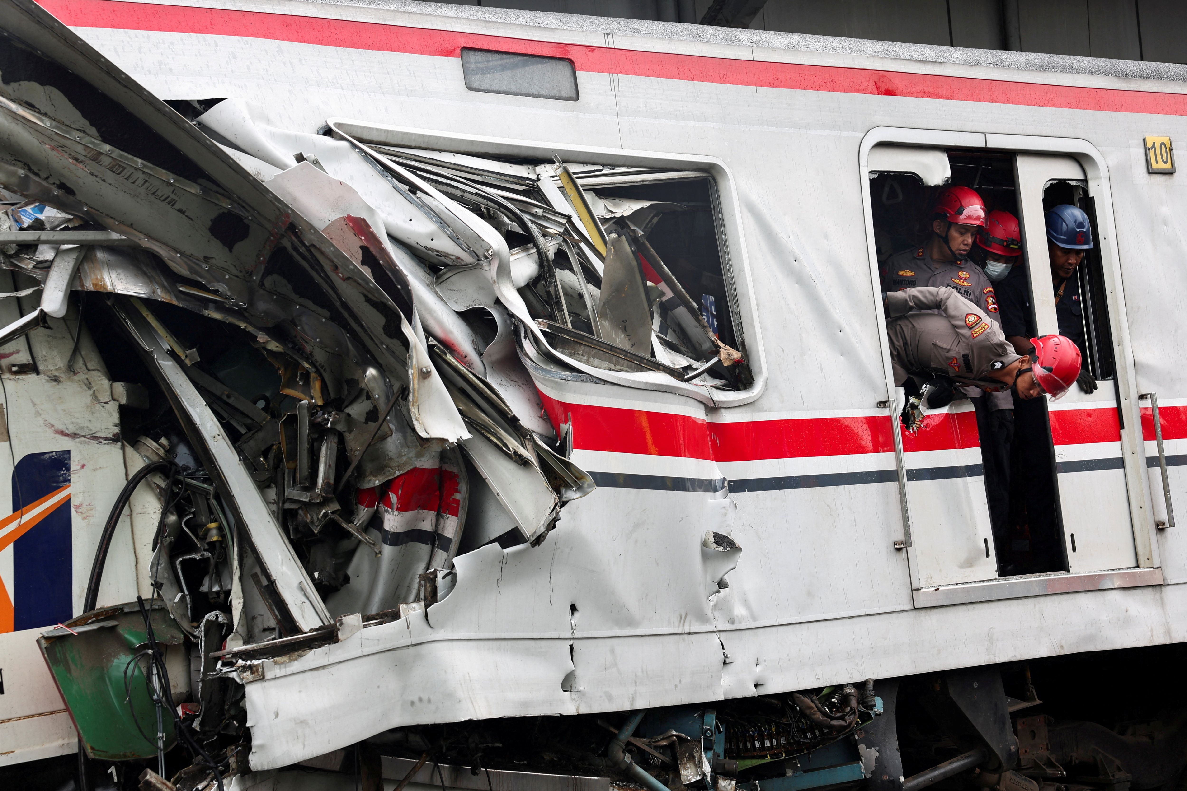 Um dos trens estava parado na estação Bekasi Timur, nos arredores de Jacarta, quando o outro trem atingiu o último vagão, que era exclusivo para mulheres, do estacionado.