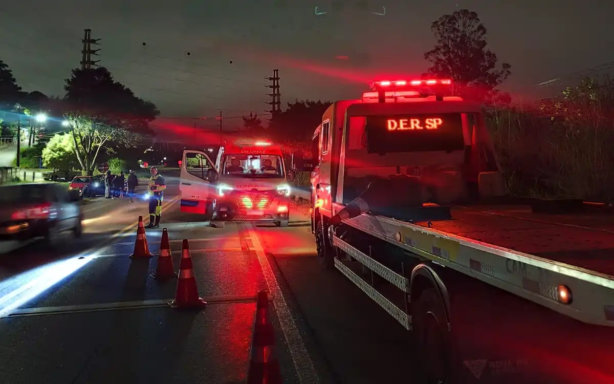 Durante a ocorrência, dois indivíduos não identificados chegaram a pegar a placa do veículo, mas foram contidos por equipes do DER que atuavam no local.