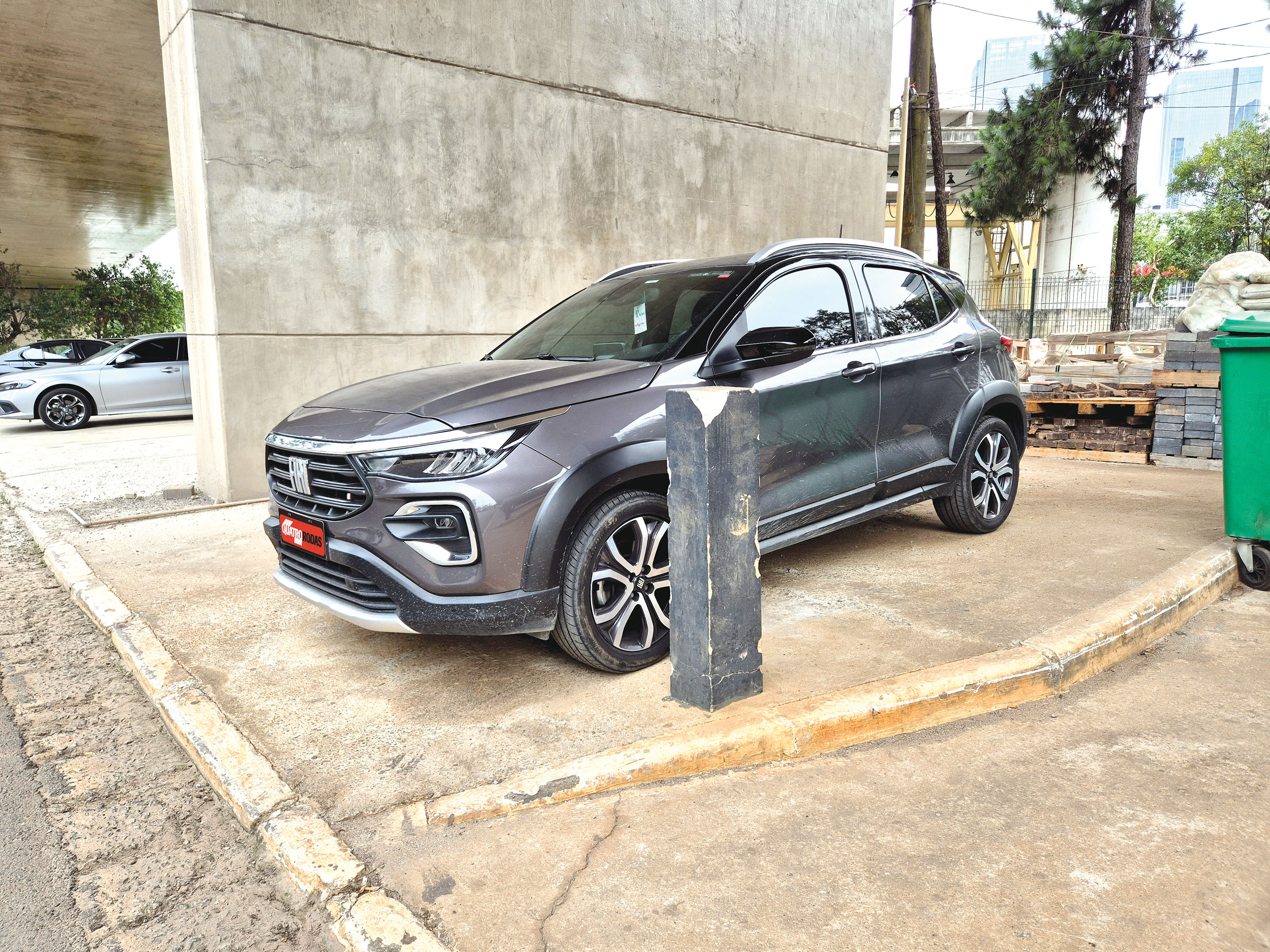 Já de volta ao dia a dia da redação, o Fiat Pulse acabou vivenciando seu primeiro acidente. “Me preocupei em tomar distância do Land Rover parado ao lado e não vi o poste do outro lado da vaga ao sair com o carro”, disse a estagiária Cristiane Barreto. O poste não danificou a pintura, mas arranhou a moldura plástica da caixa de roda dianteira esquerda e deixou um leve amassado, que pode sair com um serviço de martelinho de ouro.
