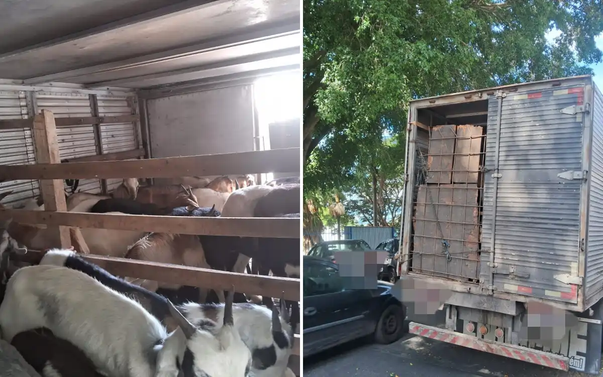 A abordagem ocorreu durante fiscalização de trânsito, quando a equipe identificou um caminhão-baú trafegando com as portas traseiras abertas. Durante a vistoria, foram encontrados 130 caprinos sendo transportados em condições inadequadas e sem a documentação obrigatória, como a Guia de Trânsito Animal (GTA).